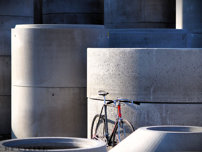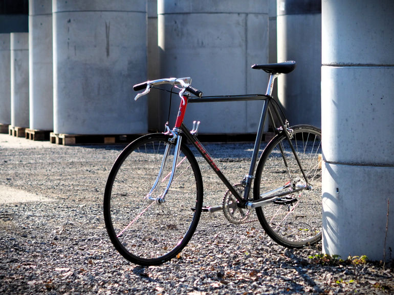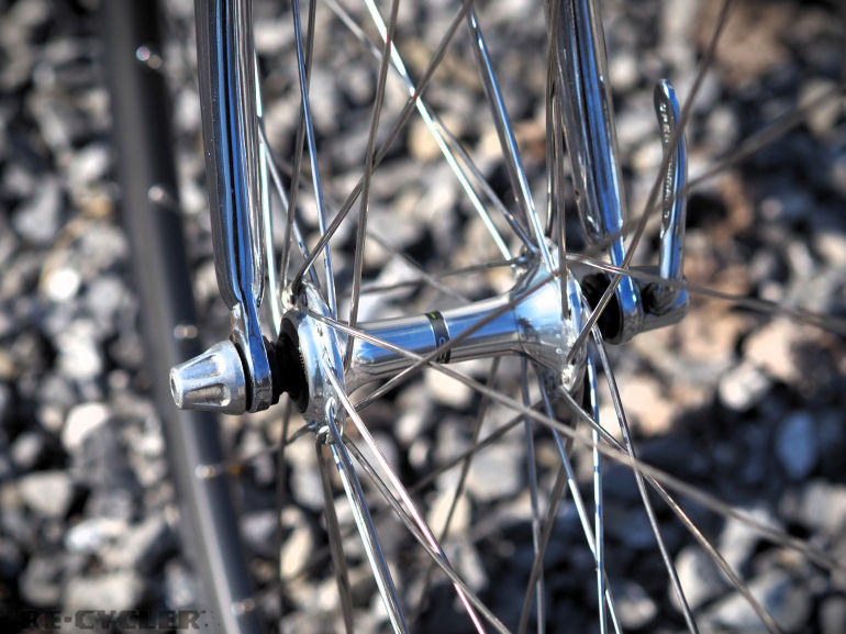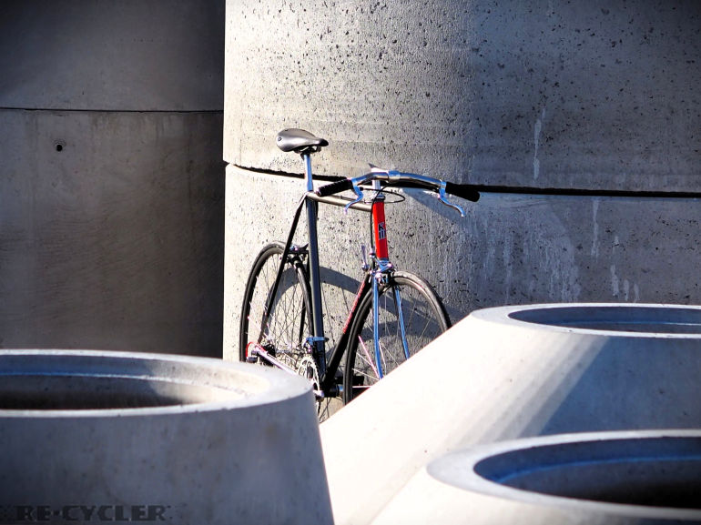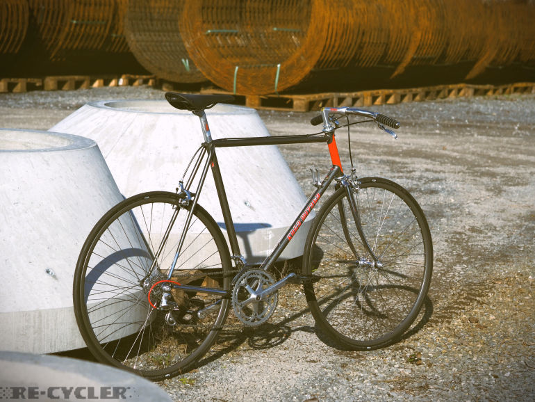 Der 60er Rahmen mit dem langen Lenkervorbau und dem nach vorne geschwungenen Lenker passt für plus-minus 190 cm grosse Re-Cycler.
